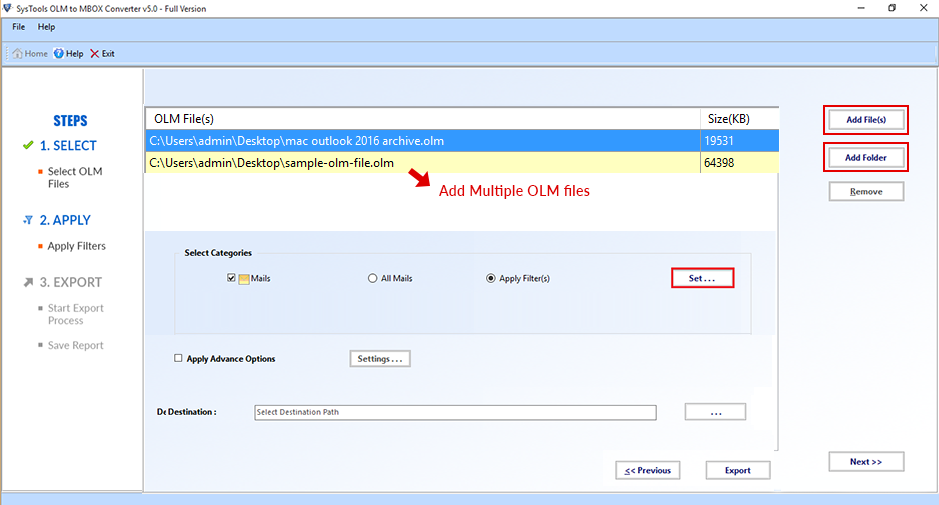 The software converts multiple OLM files at a time.